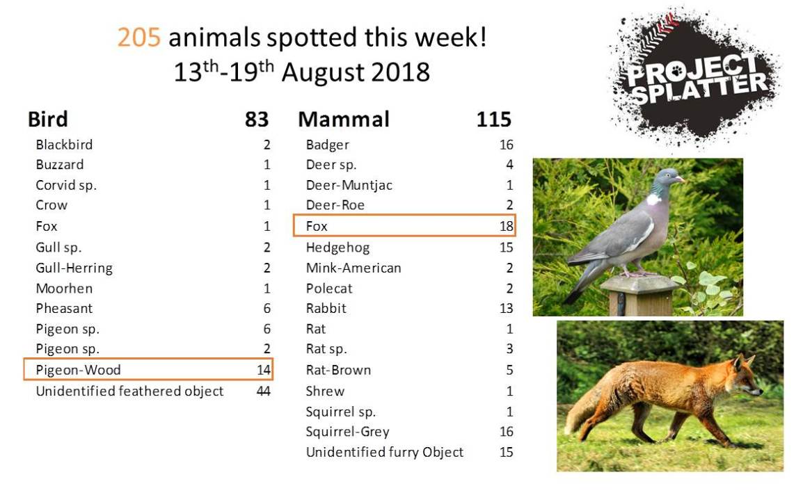 The weekly #SplatterReport is out! 205 animals were reported this week, between the 13th-19th August