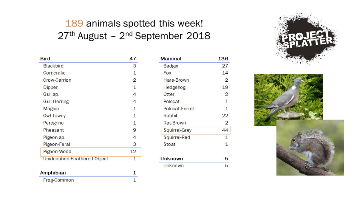 An unsurprising increase in the representation of both squirrels and rabbits, September is typically a bad month for both species.